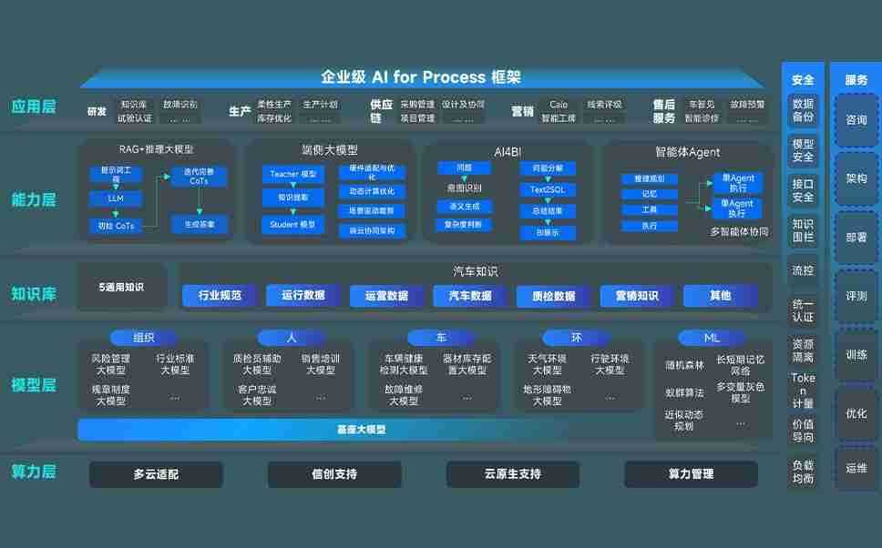 端到端的一站式AI工作空间深度融合了从企业战略规划到日常经营的全流程业务板块,,,定向解决车企内部领域多、、、部门多、、、链条长、、场景碎片化等难题,,支持车企快速构建以AI为核心的生产力写作体系,,,,实现任务执行与AI能力的无缝集成与交互